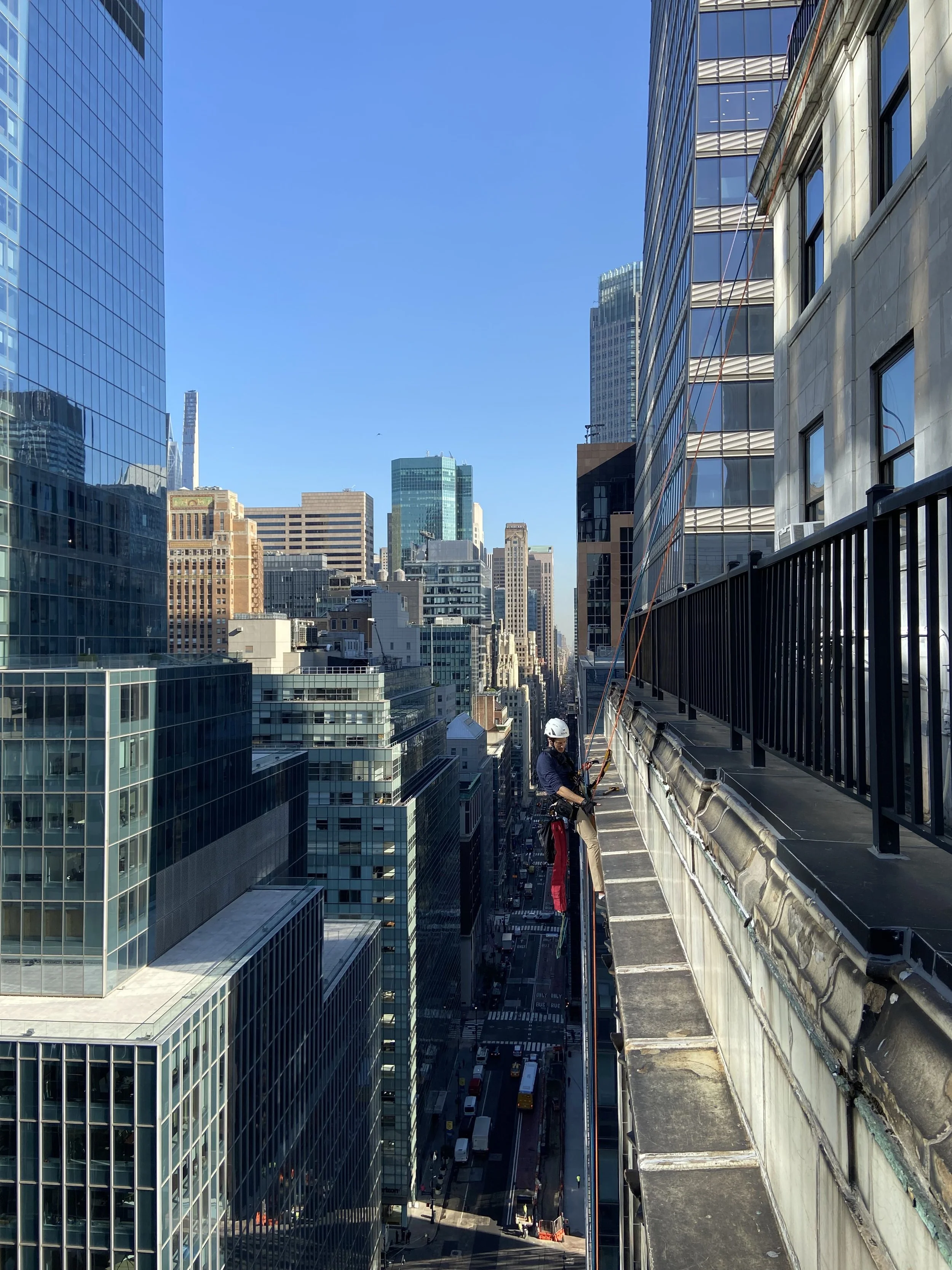 Industrial Rope Access (IRA) inspection services for the Façade Inspection Safety Program (FISP). Using rope access to safely examine the building's exterior, identifying safety issues like cracks, spalling, and loose materials. IRA allows for minimal disruption to occupants while ensuring a thorough building condition assessment.