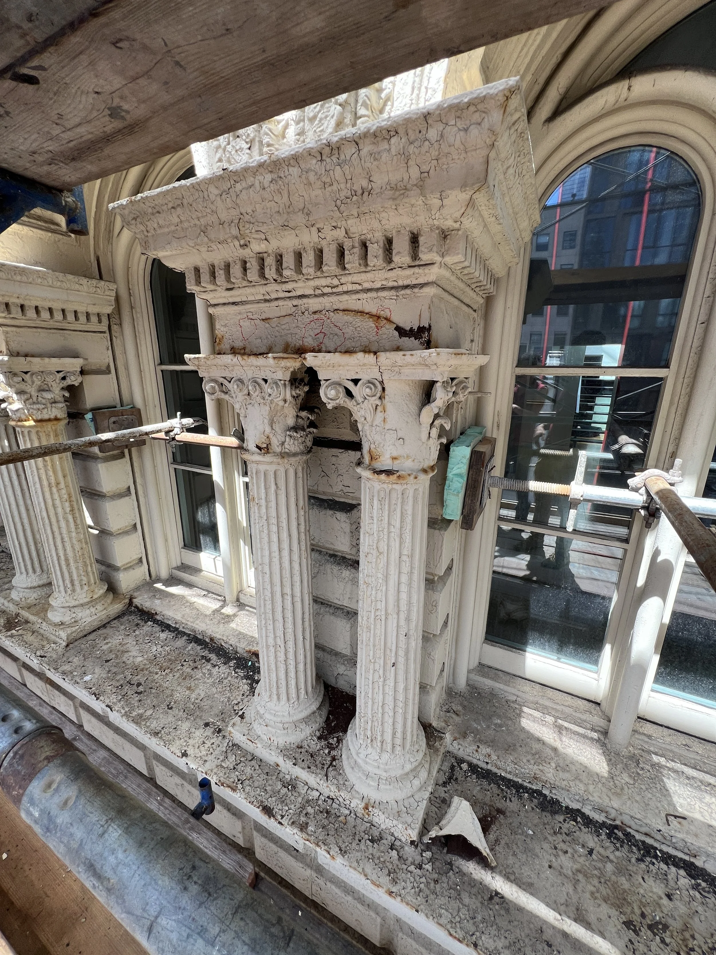Restoration of a cast iron façade and sidewalk vaults. Historic preservation of elements while addressing structural issues, meticulously repairing damaged cast iron to match the original design. Rebuilding of sidewalk vaults and resolved water infiltration, enhancing safety and functionality while maintaining the historical character of the building.