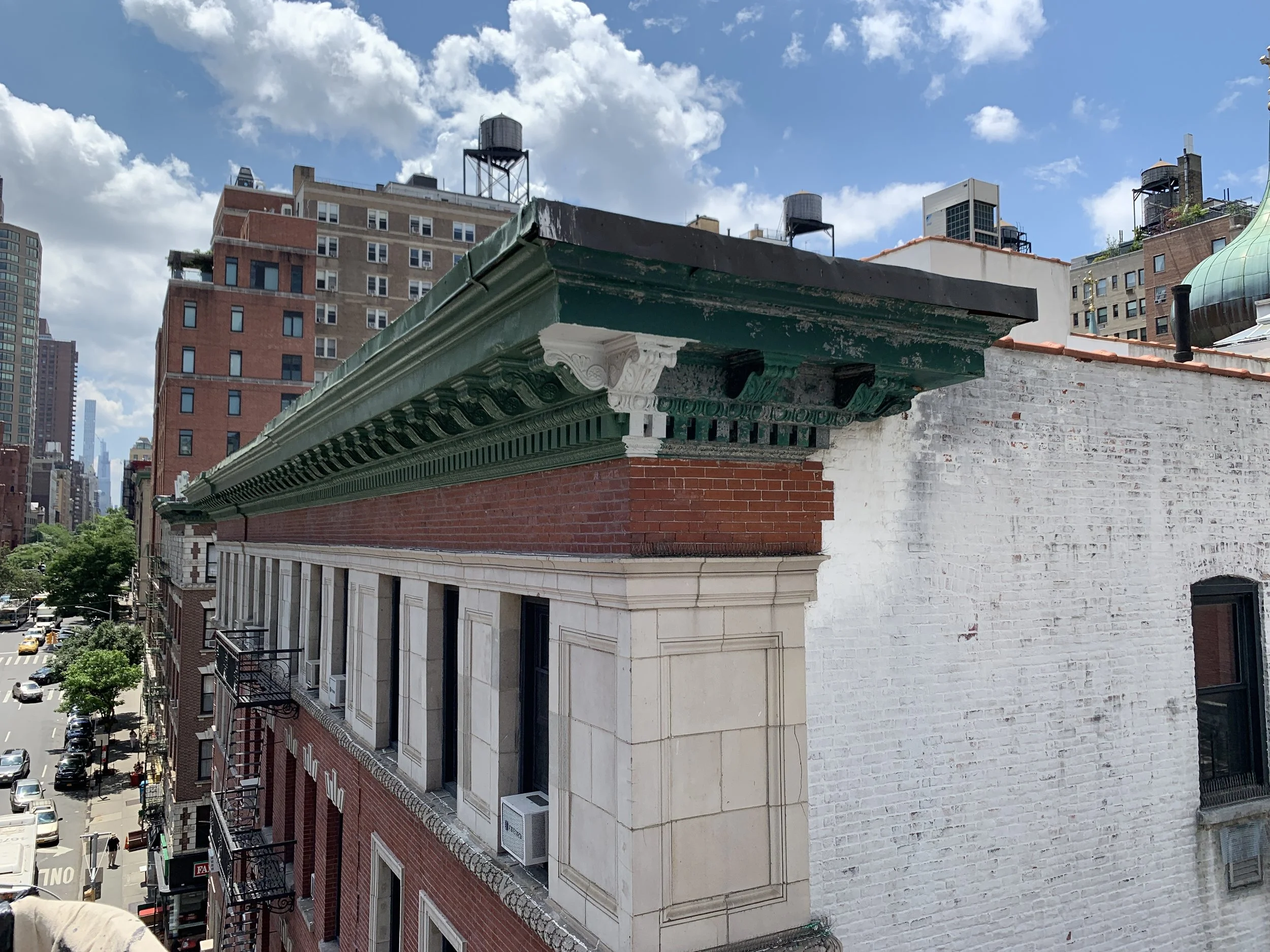 A façade and cornice repair project that featured a specialized approach to restoring the building's historic cornice. The cornice, which had been in dire condition due to extensive weathering and material degradation, required a sensitive and innovative repair solution. Instead of opting for a complete replacement, which would have been costly and potentially altered the building's original character, a unique repair process was implemented.
